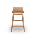 This stool complements a woven paper twine seat with a solid wood frame featuring round tapered legs, stretcher bars, and a bent back. Corte’s bentwood backrest adds comfort and an interesting design detail that makes this piece truly unique. Its midcentury design fits perfectly in resort-style high dining or kitchen island.