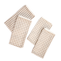 Taupe Gingham Napkin with Pom Pom Lace Set of 4